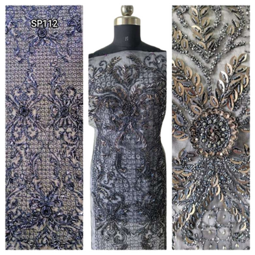 Browse through our catalogue of full-length fabrics in running-metres for bridal wear & evening couture.